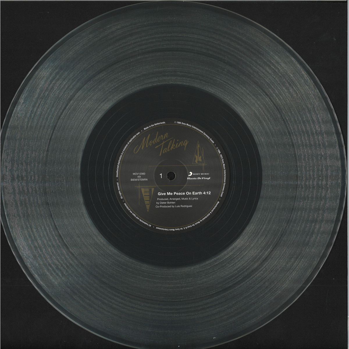 “Give Me Peace On Earth” is the second single from ModernTalking’s fourth album In The Middle Of Nowhere. It reached#29 in Germany and #28 in Austria on the singles chart.Besides the title track, this 12 inch Give Me Peace On Earth also features the bonus tracks “Stranded In The Middle Of Nowhere” and “Sweet Little Sheila”. It is available as a limited edition of 1000 individually numbered copies on crystal clear vinyl.