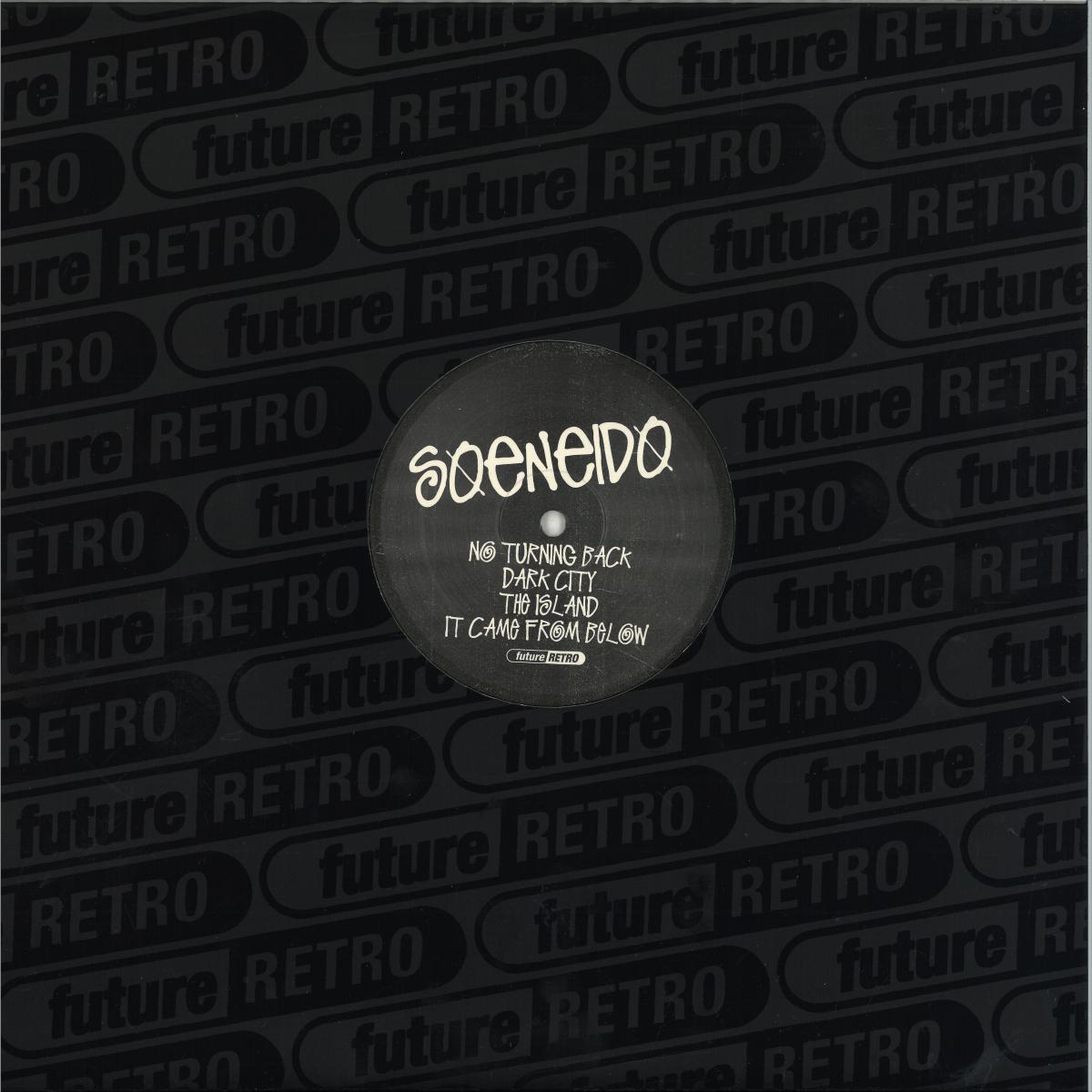 It probably won't be a shock to many to find out that I am a massive fan of Soeneido & his music. His style varies between the ruff, the darkside, the mellow, the militant style, he can really nail so many different flavours of jungle & hardcore and I've been playing his music a lot in my DJ sets.Earlier this year, completely out of the blue, he sent me a folder of like 15+ tracks he had done & I knew that there was going to be some heavy hitters in there. Surprisingly, there were more than enough tunes in there to compile a solo release on Future Retro London and it took me some time to work out which ones I wanted to have but I'm very happy with the end result that we were able to narrow it down to. I've been hammering these 4 tracks in my DJ sets, especially No Turning Back & Dark City, which may be my most played tracks for this year, so I'm glad to be able to have these out now, for everyone else to enjoy.Big thanks to Soen for his fantastic tunes & to Stekker for his work on the a-side artwork.