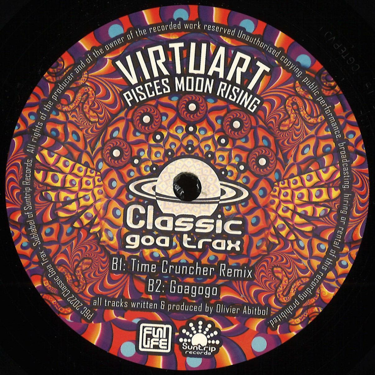 Pisces Moon Rising is a 12inch Vinyl release by Virtuart on Classic Goa Tracks. The record gathers 4 tracks and is pressed as a 12inch Vinyl for DJs and collectors. Stylistically it sits in the hardcore / trance techno space, a staple of the Selected Wax catalogue. Released on April 6, 2023, this pressing is temporarily sold out — check back soon or follow the artist to be notified of re-stocks. Selected Wax ships worldwide from the European Union with tracked delivery.